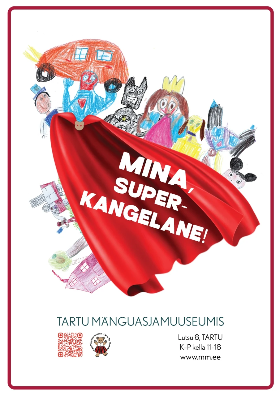 | Tartu Mänguasjamuuseumi käed-külge näitusel saab tutvust teha nii väljamõeldud kui ka päriskangelastega – võimalik on mõõta enda kangelaslikkust, lugeda kokku superkangelaseks saamise punkte ja koguda mängulisel moel sadu uusi teadmisi. Kangelane on silmapaistvate isikuomaduste või eriliste annetega isik, kes on enda elu või tervisega riskides toime pannud erakordse teo. Kes siis ei unistaks Batmanina maailma päästmisest või Ämblikmehena mööda seinu ronimisest! Tänaste laste kodustel ekraanidel toimetavad Käpapatrull, Must Kass ja Lepatriinu, nende vanemate eeskujuks olid maailma tugevaim tüdruk Pipi ja saba keerutavad Mootorratturhiired. Päriselus kõnnivad erilised inimesed aga otse meie kõrval. Need on näiteks politseinikud ja kiirabitöötajad, tuletõrjujad ja vetelpäästjad, kaitseväelased ja piirivalvurid. Kahejalgseid kangelasi toetavad neljal jalal liikuvad abimehed – teenistuskoerad, juht-, abi- ja teraapiakoerad. Väikesi igapäevaseid kangelastegusid saab aga teha igaüks. Kasvõi rattaga sõites kiivrit kandes ja kiusu ohvriks langenud sõbra eest välja astudes. | Kangelasteemalise näituse juurde kuuluvad ka muuseumitunnid lasteaialastele ja kooli esimesele astmele. Loe muuseumitundide kohta >>> Muuseumi mängutoas ja Teatri Kodu lastestuudios on alates veebruarist võimalik pidada sünnipäeva, millel teemaks PÄEVAKANGELASE PIDU. Loe rohkem teemasünnipäeva kohta >>>